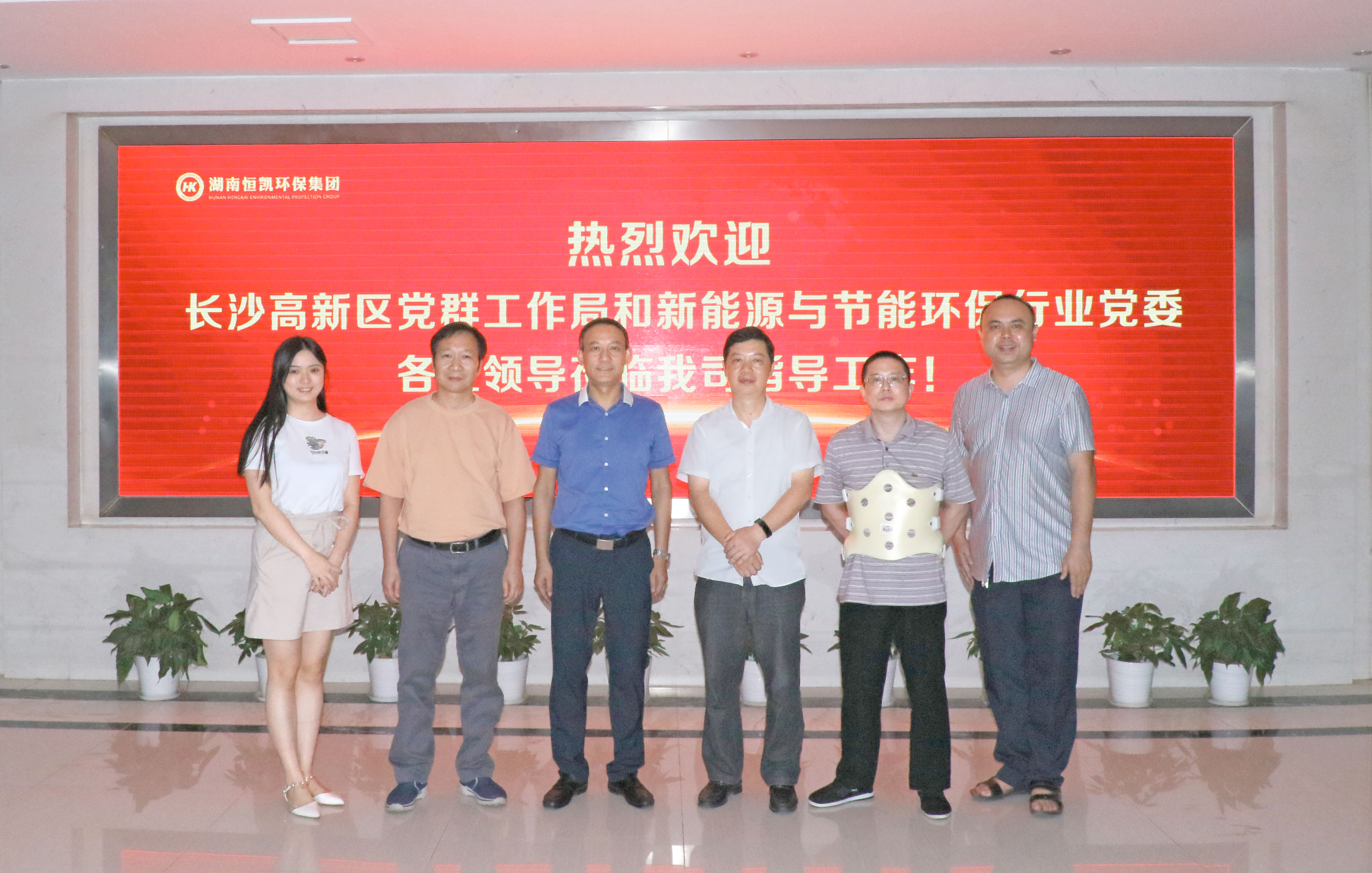 8月29日下午,长沙高新区党群工作局局长蒋学龙,副局长、企业党委专职副书记杨峥嵘,新能源与节能环保行业党委书记朱泽祥一行莅临恒凯集团视察与指导党建工作,集团党委书记王巨涛、副书记曾伟军参与会谈。