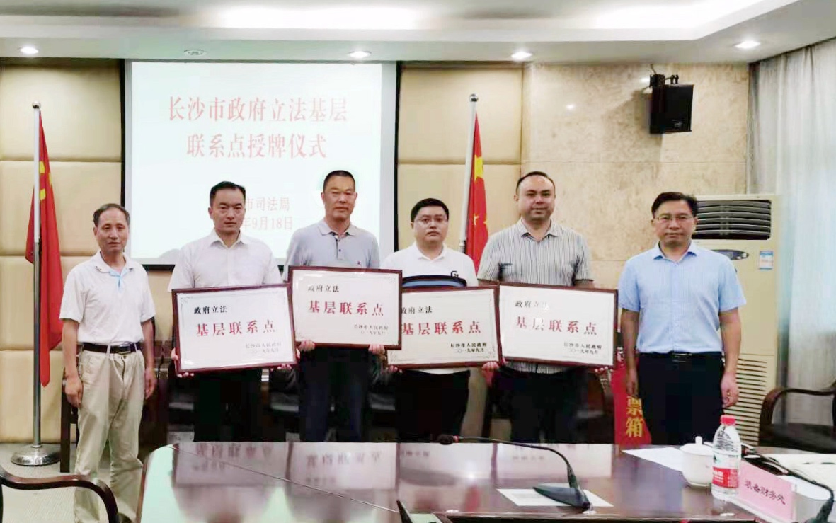 9月9日,长沙市人民政府批准同意湖南恒凯环保科技投资有限公司等4家行业协会和企业,作为新增政府立法基层联系点。9月18日,长沙市司法局为新增的政府立法基层联系点进行授牌,市人大法制委主任委员、市人大党委会法工委主任周伟,市司法局党委委员、副局长杨建辉分别为4个政府立法基层联系点授牌。至此,长沙市政府立法基层联系点由3个扩充到7个。