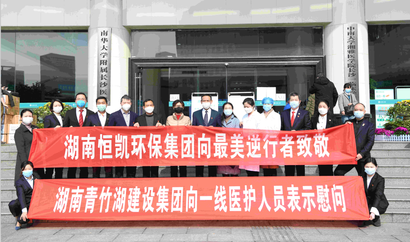 市工商联副主席刘立红,集团党委书记、恒凯环保总裁王巨涛,青竹湖建设集团总经理粟亿万一起向长沙市一线防疫医护人员进行了现场捐助,市一医院医务工作者代表表示了感谢,同时表示,恒凯环保集团、青竹湖建设集团的支持与帮助十分及时,给奋斗在一线的医护人员带来了温暖和安慰,让他们能够集中精力投入到疫情防控的阻击战中。