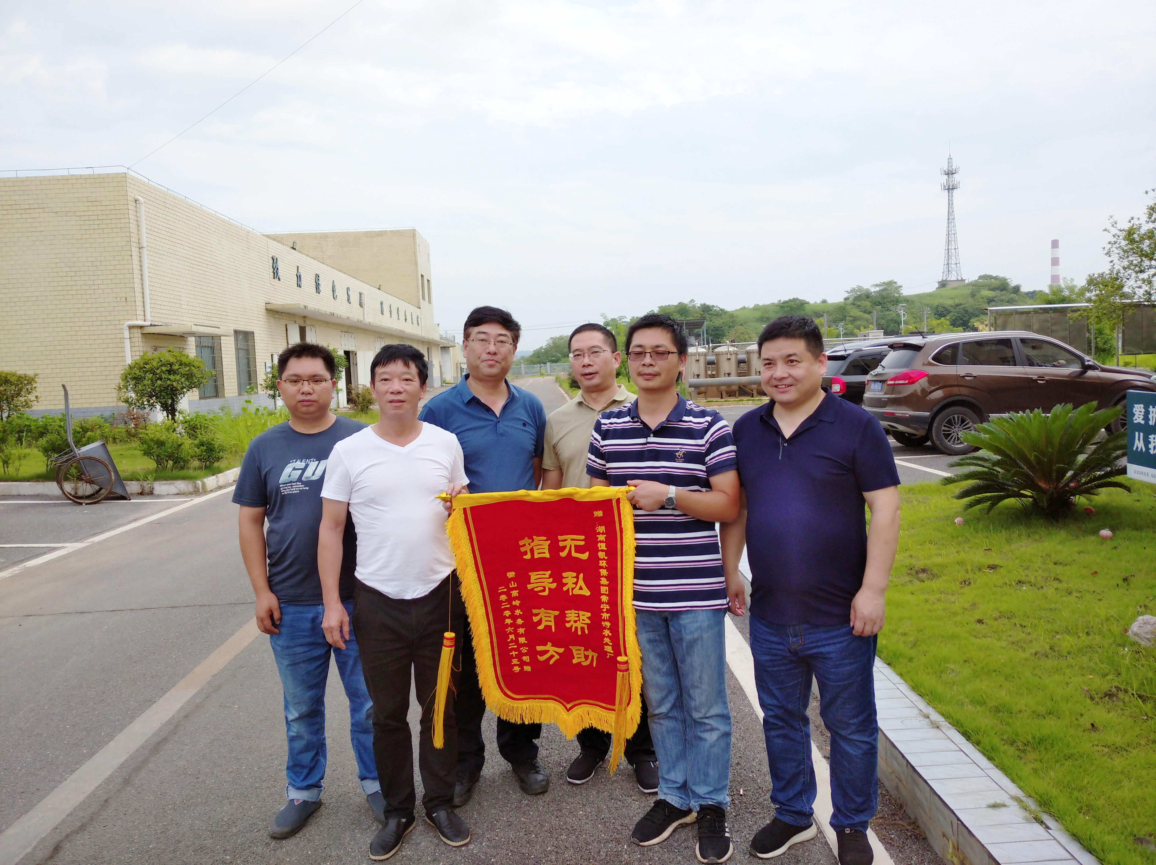 △ 高岭水务有限公司领导为松柏生活污水厂送感谢旗