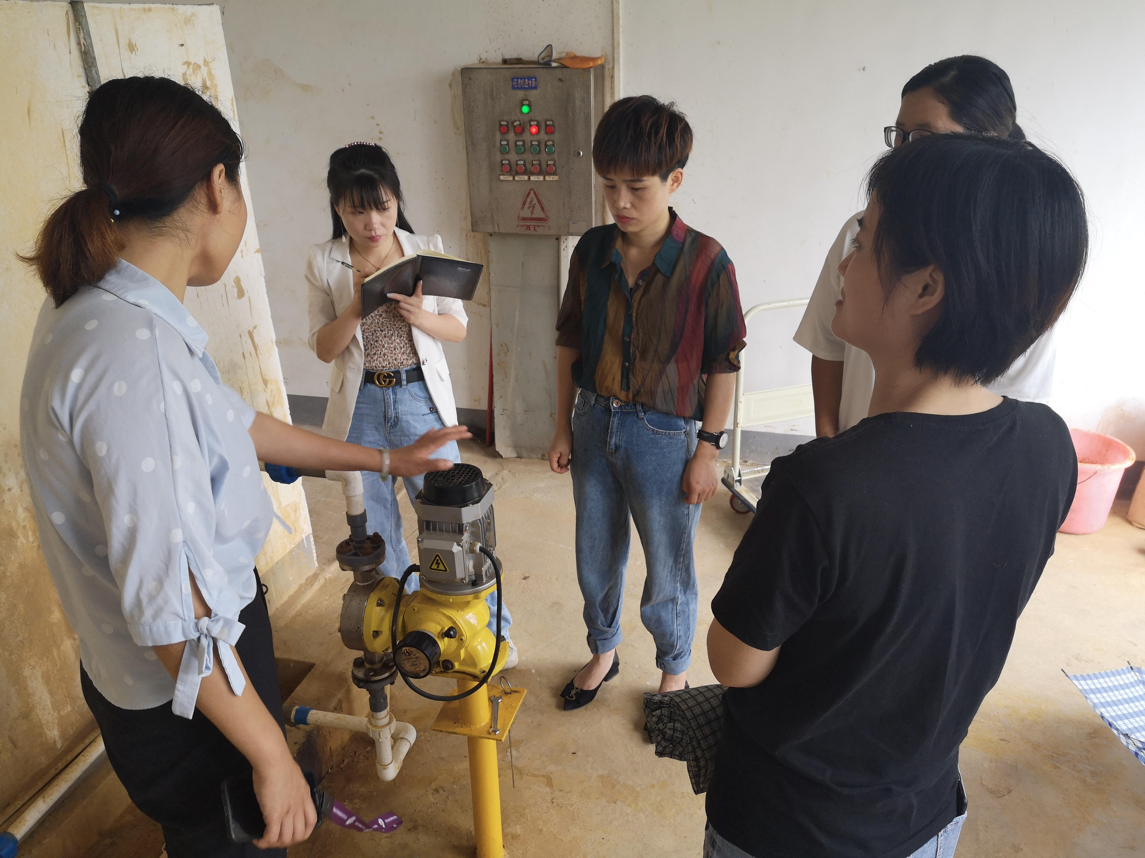 在松柏生活污水处理厂工作人员的陪同和介绍下,高岭水务有限公司实习员工首先参观了污水厂,了解厂区工艺流程,并对厂区污水处理的构筑物特点、工艺特点、进出水水质、节能减排等相关知识进行了学习交流。为了检测学习效果,在项目实操培训后,还开展了实地操作测试,确保了培训的有效性。