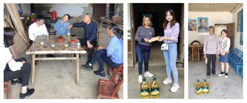 中秋国庆双节即将来临,为帮助贫困户度过一个欢乐、祥和、幸福的传统节日,集团扶贫工作小组分批来到贫困户家中走访慰问,为他们送去食用油等中秋慰问品及慰问金,鼓励他们通过自身的努力和相关政策的资助,争取早日脱贫。在结对帮扶贫困户黎茂顺的家中,扶贫工作小组与他们唠家常,关切地询问他们的生活近况和发展期望,共同协商解决其子女的就业问题。