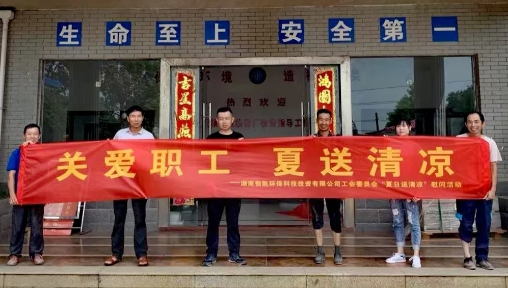 骄阳似火,酷暑难耐,入伏以来,湖南开启“桑拿”模式,气温直冲36度。为做好一线员工防暑降温工作,体现集团人文关怀,7月15日、16日,恒凯环保集团工会开展“关爱职工,夏送清凉”慰问活动,向奋战在高温烈日下的项目一线员工送去清凉与关怀。