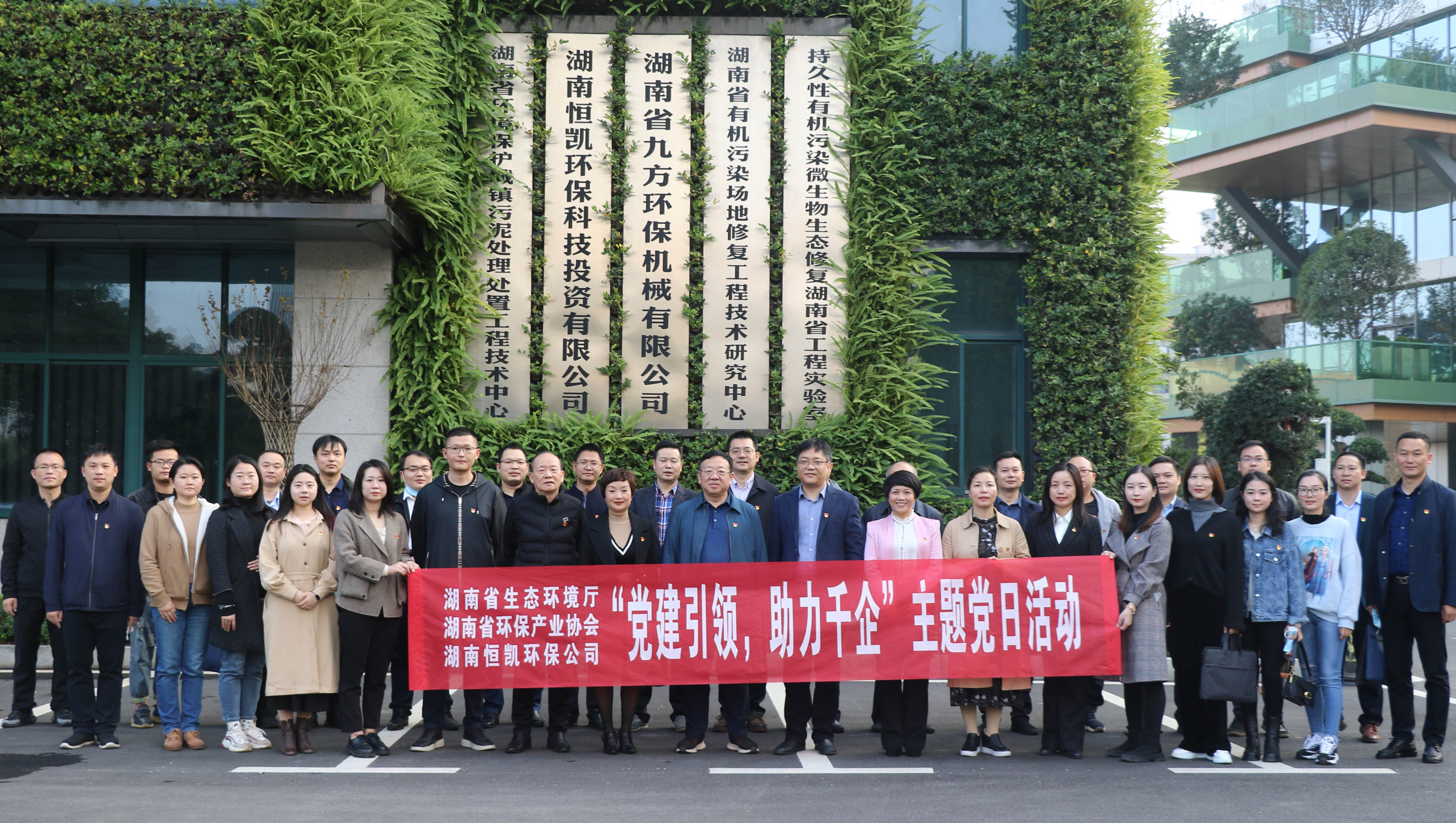 11月19日下午,湖南省生态环境厅党组副书记、副厅长刘群和湖南省环保产业协会党支部书记柴田率领支部全体党员莅临恒凯环保开展“党建引领、助力千企”主题党日活动。恒凯环保党委副书记、总裁邢汉君,党委副书记、副总裁胡泽森,党委副书记、副总裁何浪平及各支部党员代表参加了此次活动。